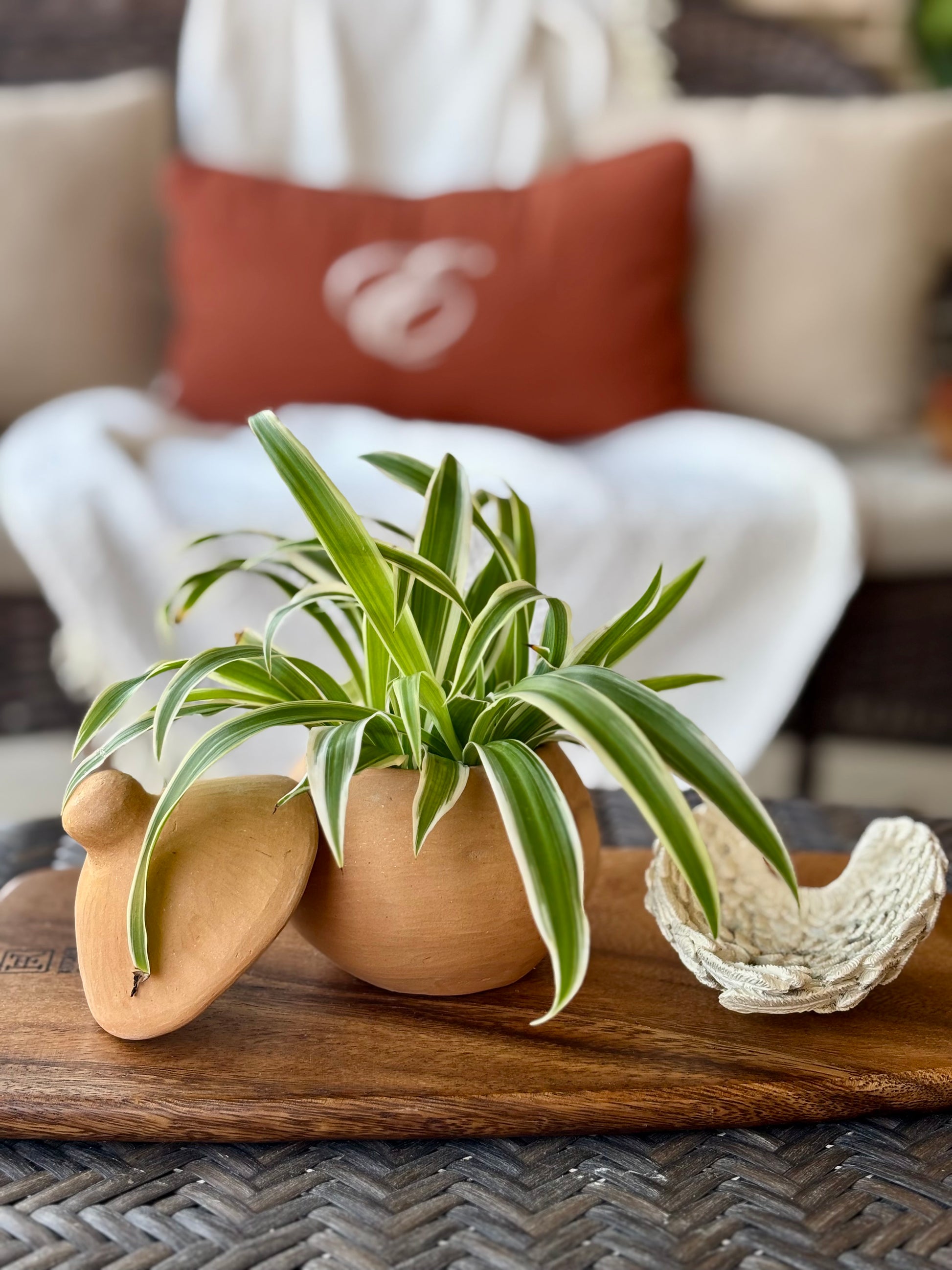 Our products are entirely handmade by artisans and therefore, each piece is one-of-a-kind. Due to natural characteristics, variations are to be expected. These include but are not limited to slight differences in colors, pits, spots, and dimensions.